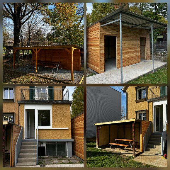 Zusätzlich wurde auch der kleine Unterstand erneuert, und wir haben einen komplett neuen, grösseren Unterstand erhalten.
